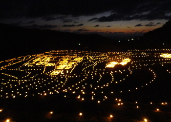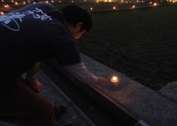 | 神浦の大中尾地区で催されるイベント! 餅つき体験や凧揚げ、紙飛行機競争、 抽選会や餅まき、火祭りや二胡演奏があります。 中でも一番の見どころは、ずばり!火祭りです!! 点火式の後、棚田に並べられた竹灯籠に参加者みんなで順に点火していきます。 陽が沈んでいくにつれ、竹灯籠の灯りが増えていく様子は、とても美しく幻想的で心地が良いです。 他にも、特産品の販売や出店もあります! また、当日はそとめ神浦川河川公園駐車場から、 会場までのシャトルバスを無料にて運行しています。 (主催:大中尾棚田保全組合、TEL:0959-24-0624) |
